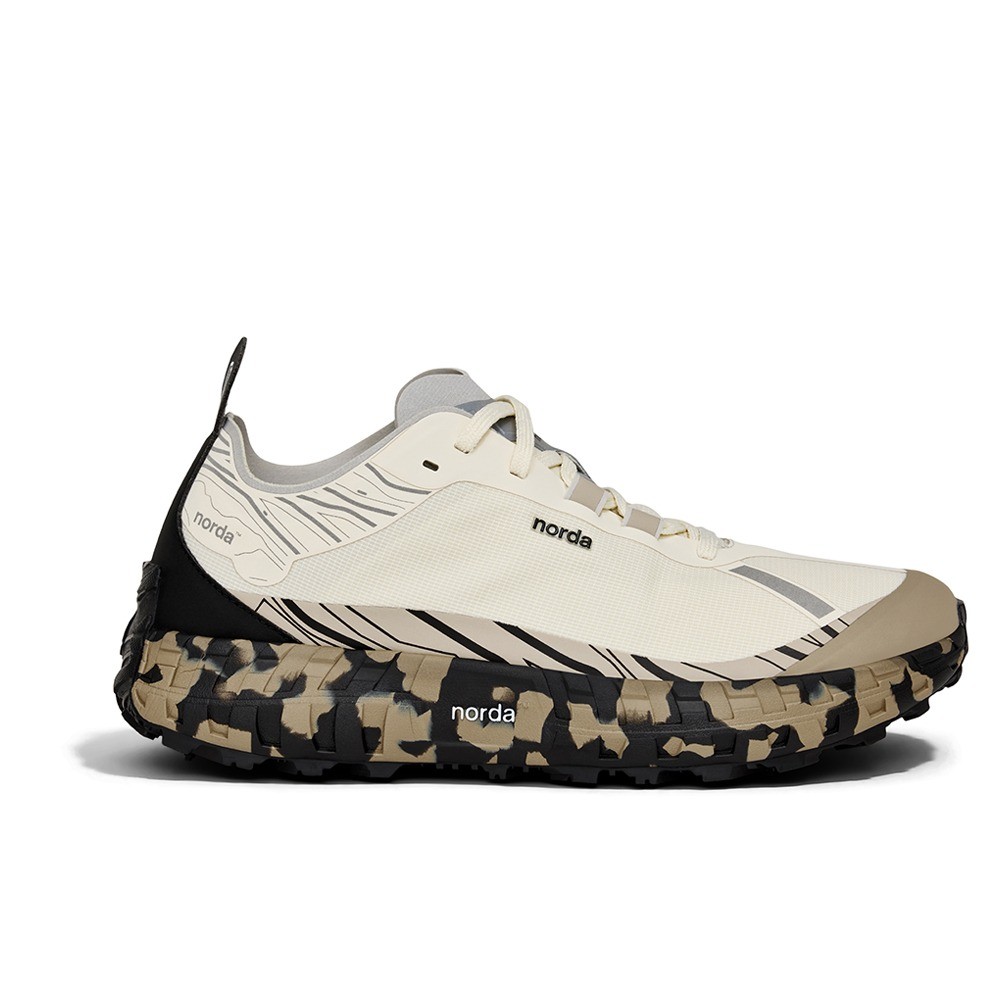 Norda 001A 'Abyss' สีที่ออกแบบมาเพื่อคนรักความเท่แบบ Low-key ตัวรองเท้ามาในโทนสีครีม Off-white ที่ดูสะอาดตา แต่ไฮไลท์เด็ดอยู่ที่พื้น Midsole ลายพราง (Camo) โทนสีน้ำตาล-ดำ ที่ดูเหมือนลวดลายของหินในหุบเขาลึก